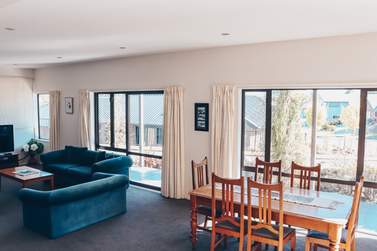Downstairs consists of a large open plan dining/living area with a heat pump and log burner (with fire guard) for your comfort. There is a great indoor/outdoor flow with a set of ranch sliders to the deck off the lounge. A modern kitchen is also located on the ground floor along with a queen bedroom and second bedroom with two sets of single bunks. Electric blankets are on the two queen beds and two singles.