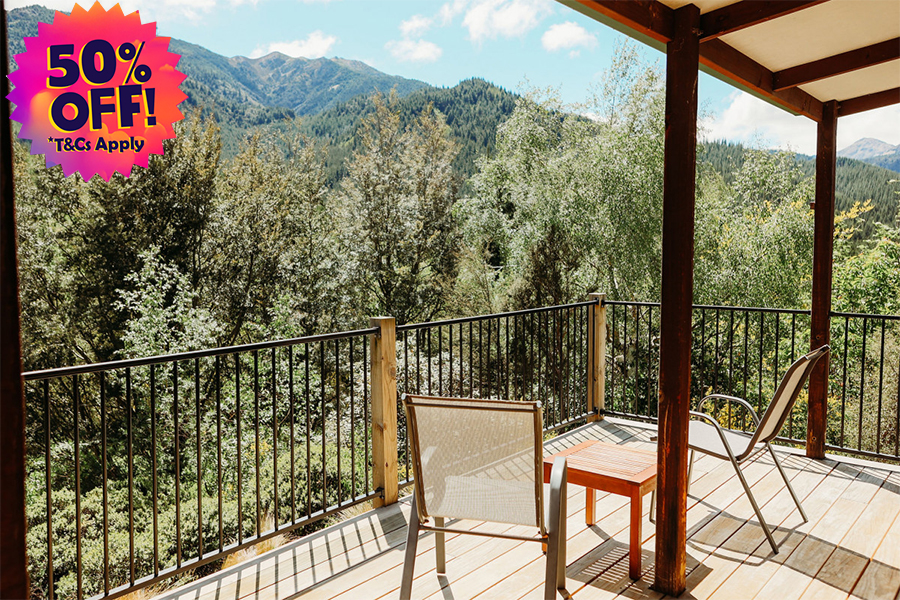 Unwind on the sunny, private north-facing balcony and take in the magnificent forest and mountain views, accompanied by the sounds of native birdlife. For the more adventurous, the section offers direct access to Hanmer’s renowned forest walks and mountain bike tracks—perfect for exploring right from your doorstep.
